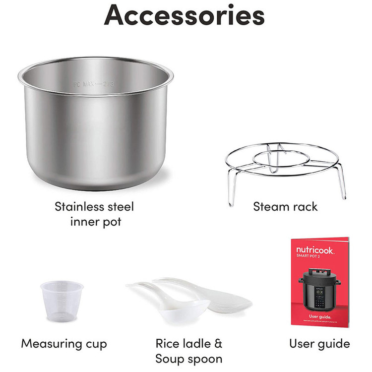 Smart Pot 2 چیزی فراتر از یک زودپز برقی است. این ابرقهرمان آشپزخانه شما است که آشپزی را آسان تر و سریعتر از همیشه می کند. این جای چندین وسیله آشپزخانه با عملکردهای مختلف از جمله پخت و پز تحت فشار ، تفت دهنده ، آرام پز ، پخت و پز برنج ، بخارپز ، تهیه ماست و گرم شدن غذا و .... است. استفاده از آن بسیار ساده است و فضای زیادی را روی میز آشپزخانه شما ذخیره می کند. زودپز هوشمند نوتریکوک دارای ویژگی های جدیدی است که برای سهولت شما طراحی شده اند. صفحه کنترل ساده با نمایشگر LED روشن و نشانگر وضعیت پخت و پز به آشپزهای خانگی اجازه می دهد تا خودشان روی تجربه آشپزی تمرکز کنند. همچنین این زودپز از برنامه آشپزی هوشمند Sous Vide برخوردار است.