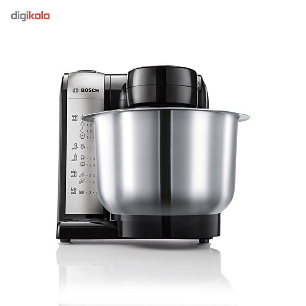 ماشین آشپزخانه بوش مدل MUM48A1یک دستگاه همهکاره بسیار کارآمد است که وارد بازار شده و طرفداران زیادی دارد. این محصول با رنگ مشکی خود و ترکیب با المانهای رنگ روشن و استیل زیبایی دوچندانی دارد که به آشپزخانهها روح و حس قدرت میبخشد. ظرف اصلی این محصول مخصوص خمیرگیری و شیرینیپزی است و بهاینترتیب در رده ماشین آشپزخانهها دستهبندی میشود. کافی است ملزومات لازم را به دستگاه وصل کنید و موتور را روشن نمایید. دیسکهای رنده ارائهشده همراه مدل MUM48A1قابلیت ریز کردن به شکلهای مختلف مواد را دارند. پرههای همزن برای هم زدن و حل کردن مواد سبک تا نسبتاً خشک استفاده میشوند. تنوع سرعت و قابلیت تنظیم آنها باعث میشود تا عملکرد دستگاه بیشتر در اختیار کاربر باشد. پایههای ضد لغزش در نظر گرفتهشده زیر ماشین آشپزخانه، مانع از حرکت، لغزش و جابجایی دستگاه میشود. البته موتور قدرتمند این دستگاه میتواند تأمینکننده نیروی حرکتی قطعات جانبی مانند چرخگوشت، مخلوطکن، خردکن و آب مرکبات گیری باشد که این قطعات بهعنوان لوازم جانبی قابل تهیه در بازار است و با این محصول یکجا عرضه نمیشود. بوش تولید و عرضهکننده لوازمخانگی در سراسر جهان شناختهشده است. این شرکت با ارائه محصولات باکیفیت و متنوع برای نیازهای متنوع کاربران گزینههای متفاوتی پیش روی خریداران قرار میدهد.