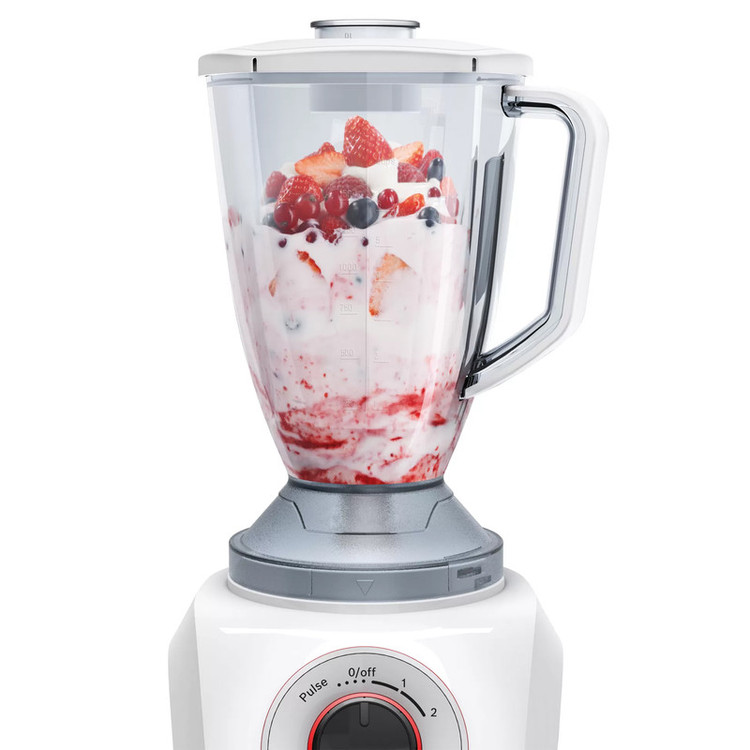 پارچ مخلوط کن با گنجایش 2.4 لیتر قابلیت میکس مواد غذایی گرم و سرد دارای سه برنامه جهت حالت یخ خردکن،شیک و اسموتی دارای 2 دور موتور بهمراه حالت پالس(لحظه ای) تمام قطعات پلاستیکی عاری از مواد شیمیایی (BPA FREE)