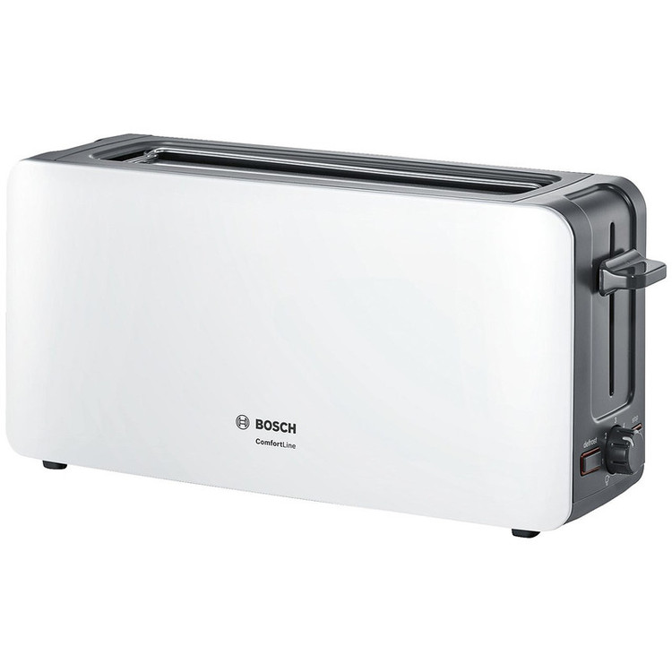 بوش تولیدکننده لوازم خانگی مطرح در جهان، توستر دیگری را با مدل TAT6A001 تولید کرده و در اختیار کاربران قرار داده است. در این مدل از توسترهای بوش دو جایگاه برای قرار دادن نان در نظر گرفته شده تا بتواند با سرعت و کیفیتی قابلقبول نان را برشته و گرم کند. خردهنانها در کشوی جمعآوری مخصوص این کار میریزند که بهراحتی از دستگاه بیرون میآید تا در استفادههای بعدی دود و سوختگی ایجاد نشود. قابلیت یخزدایی و گرم کردن مجدد نیز در این دستگاه در نظر گرفتهشده است. با استفاده از قابلیت تنظیم حرارت این دستگاه میتوانید حرارت را بر روی میزان دلخواهتان تنظیم کرده و از سوختگی نان جلوگیری کنید. همچنین قابلیت قطع خودکار و دکمه توقف عملیات این مدل از توسترهای بوش این امکان را فراهم میآورد تا بدون نگرانی در مورد سوختگی نان در هر زمان ممکن عملیات گرم کردن را قطع کنید. این محصول وزنی حدود 2.5 کلیوگرم دارد که میتواند مناسب باشد. اگر شما یکی از مصرفکنندگان محصولات بوش، این شرکت مطرح و معتبر تولیدکننده لوازم خانگی هستید قطعا میدانید در بازار لوازمخانگی برقی از این شرکت به نیکی یاد میشود و علاقهمندان همواره محصولات آن را بررسی و خرید میکنند.