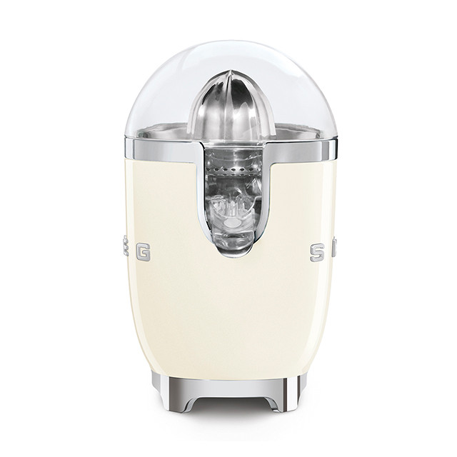 موتور اسمگ مدل CJF01 بسیار کم صدا بوده و دارای توانی معادل 70 وات است. این قدرت موتور، چرخش بالایی را برای آن تامین کرده است. همانطور که در تصاویر نیز مشخص است، این آب مرکبات گیر اسمگ از نوع بدون اهرم برقی میباشد. بدنه این آب مرکبات گیری smeg از بدنهای با جنس آلومینیوم ریختهگری یا همان دایکست ساخته شده است که هم در مقابل ضربه بسیار مقاوم است و هم در مقابل رطوبت، طول عمر بسیار بالایی دارد. همچنین مجهز به پایههای ضد لعزش میباشد که هنگام کار از تکان خوردن و لرزش آن جلوگیری میکند. عملکرد فشاری این آب مرکبات گیر اسمگ فشاری است. برخلاف دیگر آب مرکبات گیرهای دیگر که ابتدا باید دستگاه را روشن کرده و سپس به وسیل اهرم فشاری یا هر وسیلهی دیگری، میوه قاچ شده را روی مخروطی فشار میدهید، در این آب مرکبات گیر به محض فشار دادن مخروطی دستگاه شروع به کار میکند و مخروطی شروع به چرخش خواهد کرد. به این ترتیب هم در مصرف انرژی بسیار صرفه جویی خواهد شد، هم سطح امنیت بالا خواهد رفت. بنابراین کافیست که میوه نصف شده را روی مخروطی، به میزان بسیار کمی فشار دهید تا موتور قدرتمند دستگاه شروع به کار نماید. سیم اتصال این آب مرکبات گیری با پریز برق از طریق کابل 1 متری آن صورت میگیرد. محفظهی جمع آوری سیم در زیر دستگاه طراحی شده است تا نگهداری و حمل و نقل آن بسیار آسان شود.