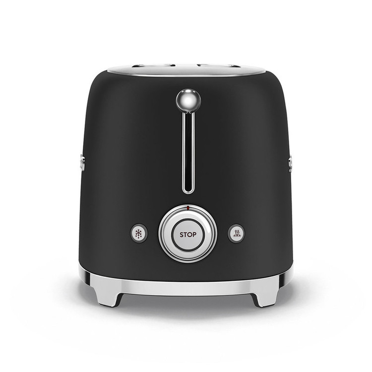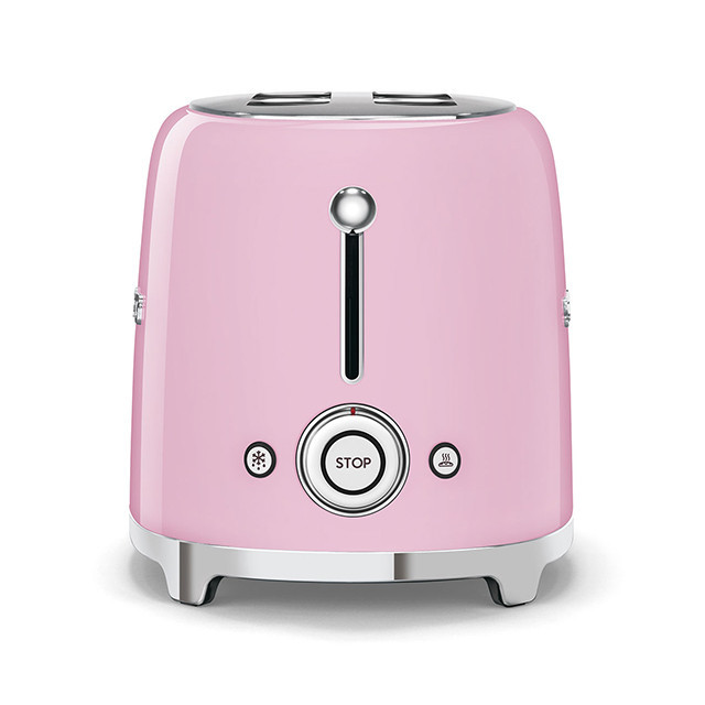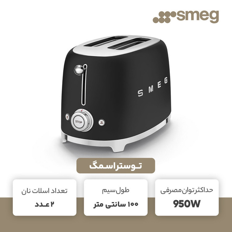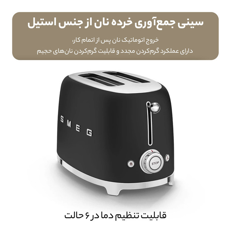 توستر اسمگ مدل TSF01 طراحی بسیار خاص و زیبایی دارد که یادآور وسایل خانگی قدیمی است. این مدل از سری 50s Style اسمگ است که با الگوبرداری از سبک طراحی دههی 50 و اوج دوران مدرنیته طراحی شدهاند. از همین رو در طراحی آنها از خطهای صاف و زاویههای تند استفاده نشده است. این سبک طراحی باعث میشود دستگاه حس خشک و صنعتی یک ماشین را نداشته باشد و بیشتر دکوراسیون آشپزخانه را گرم و صمیمی کند. این توستر دارای 2 جای نان است و از این رو برای خانوادههای کوچک دو نفره بسیار مناسب است. همانطور که از نام این دستگاه پیداست، کار اصلی آن تست کردن نان است. باوجود قابلیت تنظیم حرارت، کاربر میتواند نان تست خود را به میزان مورد علاقهی خود تست کند تا کاملا ترد، نیمه ترد یا نرم باشد. البته برای دستگاه دکمهی توقف هم در نظر گرفته شده تا کاربر بتواند فرایند تست شدن را متوقف کردن و میزان تردی نان را بسنجد. البته که توستر غیر از کار اصلی خود، برای یخ زدایی نان هم کاربرد دارد. شاید این مفیدترین کاربرد توستر باشد چون مشکل گرم کردن نان با مایکروفر یا روی گاز را حل میکند. وقتی نان را روی اجاق گاز گرم میکنیم احتمال سوختن آن بسیار زیاد است. همچنین وقتی نان را با مایکروفر گرم میکنیم تنها برای چند دقیقه حالت تازگی دارد و پس از آن کاملا خشک و سفت میشود. اما توستر با حرارت طبیعی، متداوم و نه چندان زیاد نان را یخزدایی و سپس گرم میکند. به این صورت نان طوری گرم میشود که انگار به تازگی از تنور بیرون آمده است. برای این که خورده نان داخل توستر جمع نشود و تمیز کردنش کاربر را دچار دردسر کند، یک سینی کشویی زیر دستگاه کار گذاشته شده که خوردههای نان روی آن میریزد و کاربر به سادگی آن را بیرون میکشد و تمیز میکند.