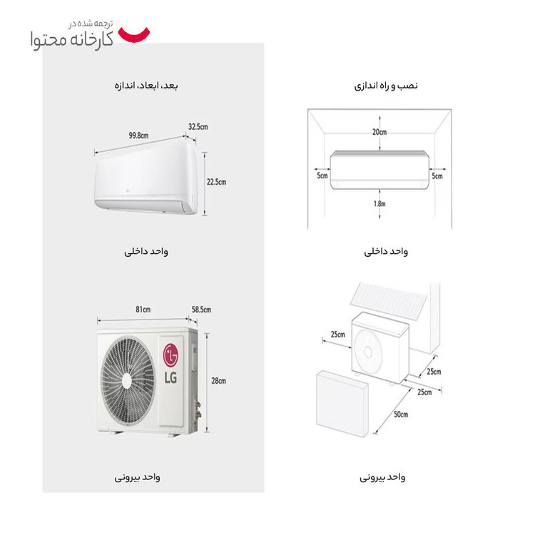 ابعاد یونیت خارجی : 870x650x330 سانتیمتر