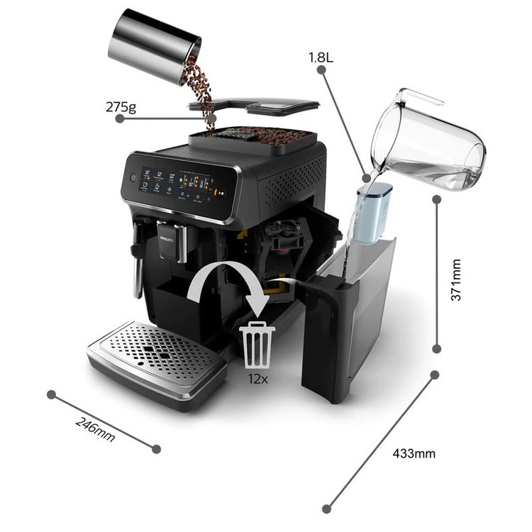 امکانات اسپرسوساز : آسیاب قهوه , برنامهریزی , تولید کف شیر , حالت آماده به کار , سیستم کاپوچینو ساز , مخزن شیر , نمایشگر دیجیتال