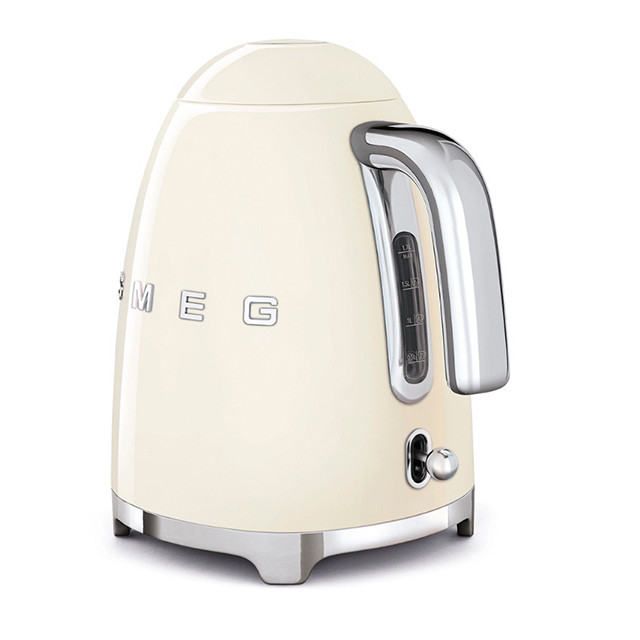 شرکت اسمگ به عنوان یکی از لوکسترین با کیفیتترین شرکتهای سازندهی لوازم خانگی کوچک و بزرگ شناخته میشود. این شرکت با طراحی منحصر به فردی که دارد امضایی کاملاً مختص به خود در ساخت محصولاتش دارد. این منحصر به فرد بودن به گونهای است که هر محصول شرکت اسمگ از دور قابل تشخیص است و میتوان به سادگی گفت که در شرکت اسمک ساخته شده است. در ادامه به معرفی کتری برقی اسمگ مدل KLF03 میپردازیم. کتری برقی اسمگ مدل KLF03 از استیل ضد زنگ طراحی و ساخته شده است که در مقابل رطوبت و ضربه بسیار مقاوم است و علاوه بر این ظاهری جذاب و مدرن به آن بخشیده است. البته اگر توجه کنیم خواهیم دید که استیل به کار رفته در این کتری برقی اسمگ به غایت با کیفیت بوده و جلادهی آن به زیبایی این محصول افزوده است. به مانند دیگر محصولات شرکت اسمگ این کتری اسمگ KLF03 نیز در رنگهای مختلف و گوناگون ارائه میشود تا تمامی سلایق بتوانند رنگ دلخواه خود را انتخاب نمایند. ظرفیت این کتری برقی برابر با 1.7 لیتر است. این یک ظرفیت استاندارد میباشد که برای یک خانوادهی متوسط به بالا طراحی گشته است. با توجه به توان بالای این کتری برقی smeg مدل KLF03 میزان آبی که در داخل آن ریخته میشود در کمترین مدت زمان به جوش میآید. توان 2400 واتی این کتری اسمگ قدرت بالایی برای به جوش آوردن آب به آن بخشیده است بیشتر دستگاههایی که با آب سروکار دارند دارای نشانگر برای نشان دادن سطح آن میباشند. ولی در کتریهای برقی شرکت اسمگ این نشان دادن به صورت بسیار شیک و منحصر به فرد است.