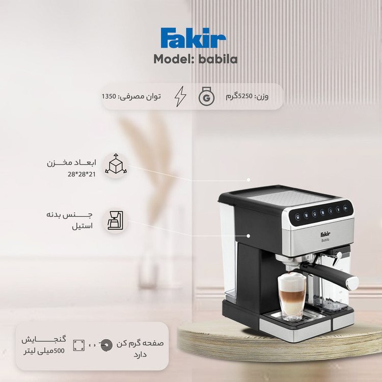 امکانات اسپرسوساز: تمپر قهوه , تولید کف شیر , حالت آماده به کار , مخزن شیر