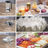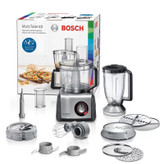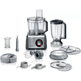 غذاساز بوش BOSCH مدل MC812M865 با توان 1250 وات دارای بیش از 50 عملکرد مختلف بوده که اکثر نیازهایتان را حین آشپزی بر طرف می نماید. ظرف مخصوص غذاساز این دستگاه با ظرفیت 3.9 لیتر از جنس پلاستیک مقاوم میباشد که قابلیت خرد و پوره نمودن حجم زیادی از مواد غذایی را در هر بار استفاده دارد. تیغه های غذاساز بوش از جنس استیل ضد زنگ و با فناوری Super cut بوده که موجب خرد نمودن سریع مواد غذایی میشود. مخلوط کن دستگاه نیز با ظرفیت 1.5 لیتر از جنس پلاستیک Tritan میباشد که در مدت زمان محدودی انواع نوشیدنی و اسموتی را تهیه می نماید. توسط دیسک رنده دو طرفه، میتوانید مواد غذایی را به دو صورت ریز و درشت رنده نمایید. یک تیغه نیز برای ورقه نمودن مواد غذایی تعبیه شده است. از قطعه خلال کن برای خلال نمودن سیب زمینی استفاده میشود. با خرد کن نگینی نیز میتوان انواع میوه و سبزیجات را به صورت نگینی خرد نمود. توسط خمیر زن پلاستیکی دستگاه میتوان انواع خمیر را ورز داد. از سری همزن برای تهیه کیک ، فرم دهی خامه و تخم مرغ استفاده میشود. پنل دستگاه مجهز به یک ولوم چرخشی بوده و توسط آن میتوان سرعت را متناسب با نیازتان تنظیم نمایید همچنین مجهز به عملکرد لحظه ای بوده که موجب کارکرد دستگاه با بیشترین قدرت میگردد.