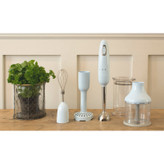 برند ایتالیایی «اسمگ» (Smeg) یکی از برندهای لوکس با محصولات بسیار خوشساخت و زیباست و تنوع تولیدات، کیفیت ساخت و رنگبندی متنوع از بارزترین ویژگیهای محصولات این برند است. گوشتکوب برقی «اسمگ» مدل «HBF02» یکی از لوازمی است که در آشپزخانه بسیار پرکاربرد است و برای هر کاری میتوان از آن استفاده کرد. از این محصول برای آمادهسازی سریع و آسان مواد اولیهی غذا استفاده میشود و به جای دستگاههای غذاساز بزرگ و جاگیر میتوان این محصول زیبا و ظریف را جایگزین کرد. گوشتکوب برقی اسمگ از پلاستیک مقاوم و مرغوب ساخته شده است. دستهی آن با طراحی جدید و خاص، به شکل کپسول بهخوبی در دست جای میگیرد و کارکردن با آن تجربهی کاربری خوبی را فراهم میکند. میلهی گوشتکوب از جنس استیل ضد زنگ است؛ بنابراین نیازی نیست نگران خرابشدن و آسیبدیدن آن باشید. گوشتکوب برقی چندکارهی اسمگ دارای چهار قطعه از جمله پورهساز، خردکن، سری همزن و لیوان است که میتوانید با توجه به هر تیغه یا سری کاری که میخواهید را بهراحتی انجام دهید. دستگاه مدل «HBF02» دارای عملکرد توربو است و با توجه به میزان غلظت مادهی غذایی میتوانید از سرعت و قدرت بیشتر هم استفاده کنید. با فشردن و پاییننگهداشتن دکمه، موتور 700 وات گوشتکوب برقی با قدرت شروع به کار میکند. گفتنی است یک ظرف خردکن با ظرفیت 1.4 لیتر در کنار این دستگاه ارائه میشود. برای استفاده از گوشتکوب میتوانید آن را به همراه لیوان بلند مخصوص یا هر ظرف دلخواه دیگری استفاده کنید. این لیوان پلاستیکی دارای درجهبندی و از ظرفیت 0.5 لیتر برخوردار است. طراحی ارگونومیک و کاربری آسان این محصول میتواند از دلایل خوبی برای خرید آن باشد. این محصول در چهار رنگ مشکی، قرمز، آبی و سفید شیری عرضه شده است که بسیار زیباست و میتواند مطابق با هر سلیقهای باشد.