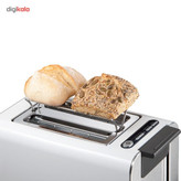 متاسفانه این کالا در حال حاضر موجود نیست. میتوانید از طریق لیست بالای صفحه، از محصولات مشابه این کالا دیدن نمایید.تلفیقی از پلاستیک و فلز، به TAT8611 ظاهری خوشایند بخشیده و زیبایی آن را دوچندان کرده است. این توستر گران قیمت از محصولات بسیار با کیفیت شرکت بزرگ بوش است. برای آن دسته از کاربرانی که علاقه دارند وسایل آشپزخانهشان لوکس و مدرن باشد توستر TAT8611 انتخاب حساب شدهای است. میزان تست و برشته شدگی نان در این مدل به وسیلهی دکمههای مثبت و منفی تعبیه شده در کنترل پنل (در پنج درجه) قابل تنظیم است. روشن/خاموش، یخزدایی و توقف عملیات از دیگر دکمههای کنترل پنل این مدل هستند. از جمله نکات قابل توجه در مورد کنترل پنل این توستر میتوان به نشانگرهای نورانی قرار گرفته در کنار دکمهها اشاره کرد.