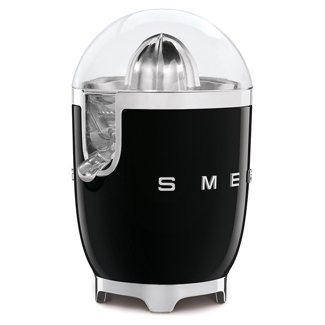 موتور اسمگ مدل CJF01 بسیار کم صدا بوده و دارای توانی معادل 70 وات است. این قدرت موتور، چرخش بالایی را برای آن تامین کرده است. همانطور که در تصاویر نیز مشخص است، این آب مرکبات گیر اسمگ از نوع بدون اهرم برقی میباشد. بدنه این آب مرکبات گیری smeg از بدنهای با جنس آلومینیوم ریختهگری یا همان دایکست ساخته شده است که هم در مقابل ضربه بسیار مقاوم است و هم در مقابل رطوبت، طول عمر بسیار بالایی دارد. همچنین مجهز به پایههای ضد لعزش میباشد که هنگام کار از تکان خوردن و لرزش آن جلوگیری میکند. عملکرد فشاری این آب مرکبات گیر اسمگ فشاری است. برخلاف دیگر آب مرکبات گیرهای دیگر که ابتدا باید دستگاه را روشن کرده و سپس به وسیل اهرم فشاری یا هر وسیلهی دیگری، میوه قاچ شده را روی مخروطی فشار میدهید، در این آب مرکبات گیر به محض فشار دادن مخروطی دستگاه شروع به کار میکند و مخروطی شروع به چرخش خواهد کرد. به این ترتیب هم در مصرف انرژی بسیار صرفه جویی خواهد شد، هم سطح امنیت بالا خواهد رفت. بنابراین کافیست که میوه نصف شده را روی مخروطی، به میزان بسیار کمی فشار دهید تا موتور قدرتمند دستگاه شروع به کار نماید. سیم اتصال این آب مرکبات گیری با پریز برق از طریق کابل 1 متری آن صورت میگیرد. محفظهی جمع آوری سیم در زیر دستگاه طراحی شده است تا نگهداری و حمل و نقل آن بسیار آسان شود.