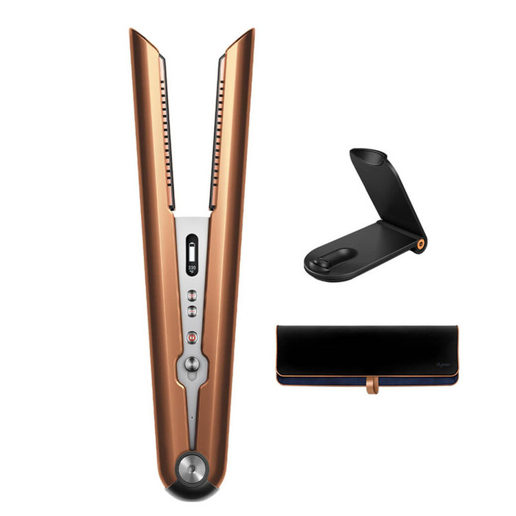 اتو مو دایسون بدون سیم مدل Dyson Corrale Hair تنها صاف کننده مو با صفحات مسی و خم شونده که به موها شکل می دهد . صفحات خم شونده آلیاژ مس منگنز در اطراف آن موهای شما را شکل می دهد . این اتو به شما امکان می دهد همان سبک که می خواهید به موها شکل دهید اما با گرمای کمتر . صاف کننده Dyson Corrale می تواند انواع مختلفی از سبک های مختلف ایجاد کند از فر و موج گرفته تا صاف و براق . سطح باتری اتو مو دایسون کنترل دما و وضعیت شارژ را در حین استفاده نمایش می دهد . شما می توانید از 3 تنظیم حرارت دقیق 165 درجه سانتی گراد ، 185 درجه سانتی گراد و 210 درجه سانتی گراد متناسب با نوع ، طول و مدل موهای خود استفاده کنید . تا 30 دقیقه حالت بی سیم می توانید استفاده کنید و فقط در 70 دقیقه به طور کامل شارژ می شود . این اتو بی نظیر مجهز به خاموش شدن خودکار و قفل امنیتی می باشد و هنگامی 10 دقیقه مورد استفاده قرار نگیرد خاموش می شود صفحات انعطاف پذیر این اتو مو جهت تنظیم دما بسیار مناسب می باشد . صفحات منعطف ما که برای جمع کردن موهای شما طراحی شده اند ، به شما کمک می کنند تا با کاهش حرارت ، ظاهری موج دار و موهای مناسب را داشته باشید . سیستم حسگر ادغام شده در آن ، دمای صفحات را 100 بار در ثانیه کنترل می کند و با حفظ قدرت دستگاه ، سطح تنظیم حرارتی را می توانید تنظیم کنید . نوع باتری در داخل دستگاه 4 سلولی لیتیوم یونی می باشد .