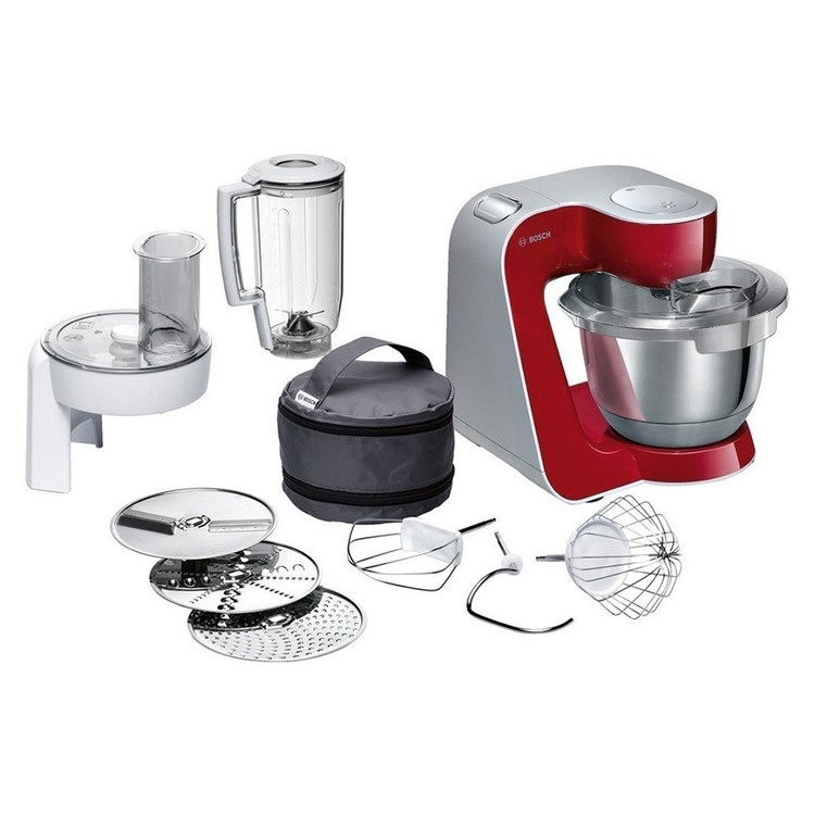 ماشین آشپزخانه بوش مدل MUM58720 یک دستگاه بسیار کارآمد است که وارد بازار شده و طرفداران زیادی دارد. این محصول با رنگ قرمز خود و ترکیب با المانهای استیل زیبایی دوچندانی دارد که به آشپزخانهها روح و تازگی میبخشد. ظرف اصلی این محصول مخصوص خمیرگیری و شیرینیپزی است و بهاینترتیب در ردهی ماشینهای آشپزخانه دستهبندی میشود. کافی است قطعات لازم را به دستگاه وصل و موتور را روشن کنید. دیسکهای رندهی ارائهشده همراه مدل MUM56S40 قابلیت ریزکردن مواد را به شکلهای مختلف دارند. پرههای همزن برای همزدن و حلکردن مواد سبک تا نسبتا خشک استفاده میشوند. این مدل دارای قطعات جانبی متنوعی است. تنوع زیاد صفحات رنده و برشزن در این مدل، تنوع کاری آن را افزایش میدهد. علاوه بر این، امکان چرخکردن گوشت با اتصال قطعهی جانبی مربوطه وجود دارد. همچنین وجود پارچ مخلوطکن، تهیهی نوشیدنیّهای متنوع از جمله اسموتیها را ممکن میسازد. افزونهی آب مرکبات گیری نیز در مدل MUM58720 تهیهی آب پرتقالهای سالم و تازه را آسان میکند. به این ترتیب این دستگاه یک محصول همهکاره محسوب میشود. تنوع سرعت و قابلیت تنظیم آنها باعث میشود تا عملکرد دستگاه بیشتر در اختیار کاربر باشد. برای نگهداری تیغهها کیف مخصوص نگهداری نیز عرضه میشود که باعث نگهداری صفحات برش در شرایط بهتری میشود. پایههای ضد لغزش در نظر گرفتهشده زیر ماشین آشپزخانه، مانع از حرکت، لرزش و جابجایی دستگاه میشود. بوش برند مطرحی در تولید و عرضهی لوازمخانگی در سراسر جهان است. این شرکت با ارائهی محصولات باکیفیت و متنوع برای نیازهای متنوع کاربران گزینههای متفاوتی پیش روی خریداران قرار میدهد.