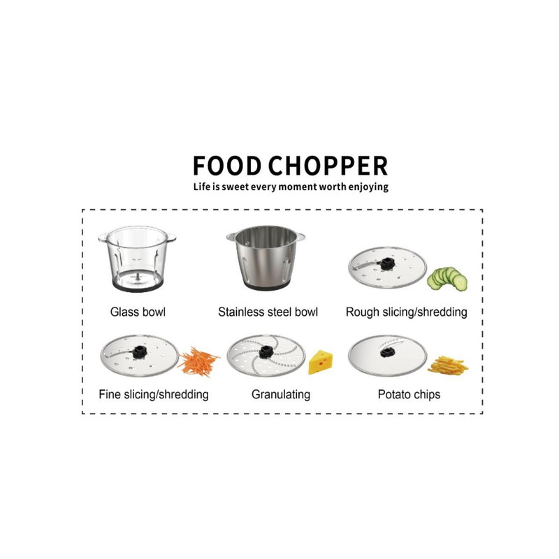 خردکن و رنده چند کاره که از یک متور 1900واتی و 2کاسه ااستیل و شیشه 3/8لیتری و 2دست تیغه 6پره تیتانیومی و 4دیسک رنده مختلف است که برای همه موارد اشپزی مورد نیاز است