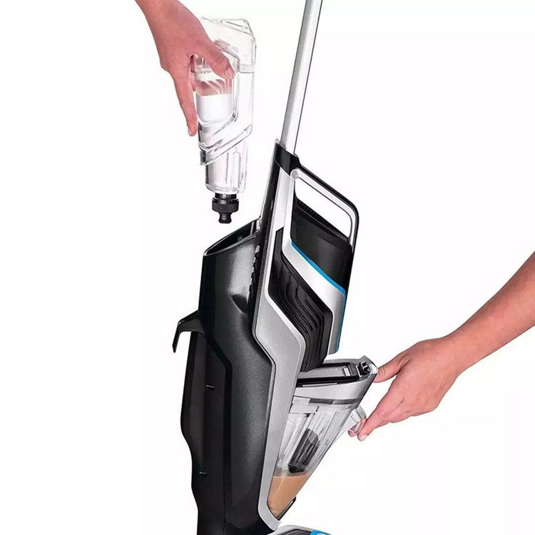 جاروبرقی عصایی بیسل مدل CrossWave محصولی بسیار جذاب با ارائه عملکردهایی متنوع قادر است سطوح متفاوت کف ساختمان را به بهترین شکل ممکن نظافت کند. با خرید این کف شوی منحصربهفرد میتوانید کف ساختمان را جارو کشیده و نیز شستشو دهید. از این جاروبرقی عصایی میتوان در تمامی سطوح از جمله پارکتهای چوبی، لمینت، سرامیک و حتی انواع فرش و موکت استفاده کرد. برخورداری از فناوری دو مخزنه، با تفکیک آب کثیف از مخزن تمیزکننده این امر را متضمن میشود که سطوح شما با ترکیبی از مواد شوینده مجاز و آب، بیش از همیشه تمیز خواهد شد. توان مصرفی 560 واتی جاروبرقی عصایی بیسل مدل CrossWave قدرت قابل قبولی را در انجام فرایند به این دستگاه بخشیده است. درعینحال میزان صدای تولیدی 88 دسیبلی از این دستگاه یک جاروبرقی کمصدا ساخته است. مخزن مخصوص آب دستگاه دارای ظرفیت 2 لیتر و از جنس پلاستیک بوده که با قابلیت تفکیک آسان امکان پر و یا خالی کردن آن بهآسانی امکانپذیر است. اما دیگر ویژگی جذاب این دستگاه برخورداری از بُرسی بینظیر است. رول برس دوکاره این جاروعصایی با مکانیزم ساختی کاملا ابتکاری متشکل از موادی همچون میکروفیبر و نایلون با اعمال چرخش 3000 دور بر دقیقه علاوه بر شستشوی سطح موردنظر، با قدرت مکش بالا زبالههای خشک و تر را نظافت میکند. همچنین با دارا بودن امکان استفاده از مایع خوشبوکننده در مخزن، محیطی با رایحه دلخواه را پس از هر بار انجام فرایند از طریق این جارو عصایی در اختیار خواهید داشت. انجام تنظیمات دستگاه از طریق کنترلکنندههای دکمهای تعبیه شده بر روی دسته این محصول صورت میپذیرد. طراحی ارگونومیک جاروبرقی عصایی بیسل مدل CrossWave موجب شده تجربه استفادهای بسیار لذتبخش و آسوده در اختیار شما قرار گیرد. چرخش 180 درجه سری دستگاه، نظافت تمامی بخشهای سطوح را به راحتترین شکل ممکن میسر میکند. همچنین نگران میزان شعاع کارکرد این جارو عصایی نباشید؛ بهرهگیری از کابل برقی به طول 7.5 متر قدرت مانور حرکتی چشمگیری را به دستگاه بخشیده است.