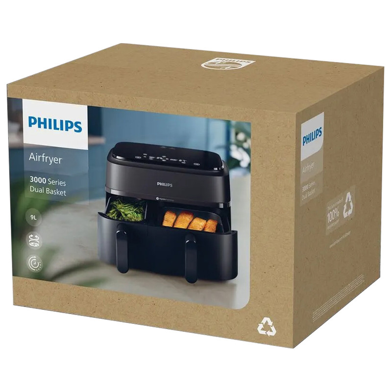 غذاها را با حداقل روغن، از بيرون ترد واز درون مغزيخت آماده مى كند. وجود دو سبد مجزا به شما امكان مى دهد تا دو نوع غذا را همزمان وبا تنظيمات جداكانه طبخ كنيد؛ بدون تداخل طعم وبو.