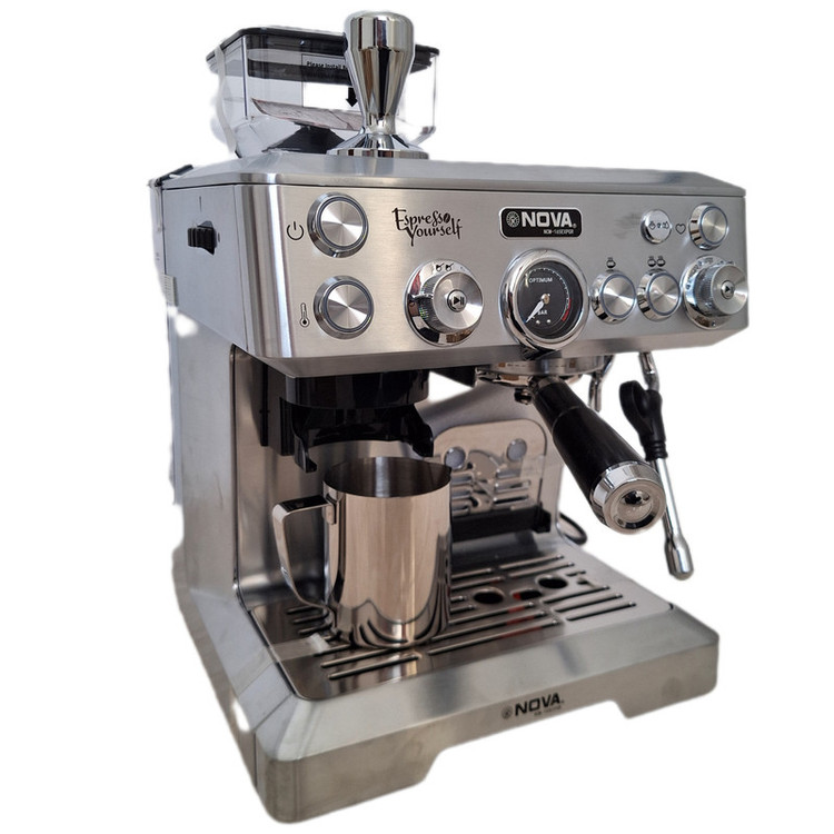 اسپرسوساز نیمه صنعتی نوا مدل 165 یکی از جدیدترین و پر طرفدار ترین محصولات شرکت نوا است. این محصول ویژگیهای ظاهری و عملکردی زیادی دارد که موجب شده است این محصول جزء قدرتمندترین اسپرسوسازها به شمار رود. از جمله قابلیتها و امکانات این محصول میتوان به مجهز بودن به آسیاب سرخود، پرتافیلتر صنعتی، گنجایش زیاد مخزن آب، نازل بخار و نازل آبجوش اشاره کرد. این دستگاه با توان مصرفی 2500 واتی خود میتواند در اسرع وقت نوشیدنی مورد علاقه شما را با بالاترین کیفیت آماده کند. این غول برند نوا دارای قابلیتهای دیگری مثل سیستم قطع کن خودکار، سیستم خنکسازی اتوماتیک، سیستم برنامه ریزی و قابلیتهای متنوع دیگری است که ارزش خرید این محصول را به شدت بالا میبرد. از ویژگی های این دستگاه میشه به : کیفیت ساخت بالا,قطع کن خودکار,آسیاب قابل تنظیم ,عصاره گیری چند حالته,سیستم خنک کننده خودکار ,گیج فشار ,قابلیت تنظیم زمان عصاره گیری اشاره کرد.از قابلیتهای منحصر به فرد این مدل، امکان تهیه قهوه اسپرسو و آمریکانو و لانگو و قهوه سرد به صورت اتوماتیک می باشد.