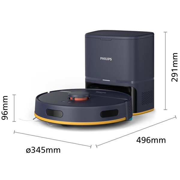 این جارو با قابلیت تیکشی مرطوب و مخزن آب ۰.۳ لیتری، نظافتی کامل و جامع را ارائه میدهد. پایه شارژ آن با ابعاد ۲۶۰x۱۷۲x۲۹۱ میلیمتر، قابلیت تخلیه خودکار زباله و شارژ مجدد جارو را فراهم میکند. کنترل این جارو رباتیک از طریق اتصال وایفای (۲.۴ و ۵ گیگاهرتز) و اپلیکیشن Philips HomeRun امکانپذیر است و با سیستم عاملهای اندروید و iOS سازگار است. یک نشانگر LED نیز وضعیت دستگاه را به شما نشان میدهد.