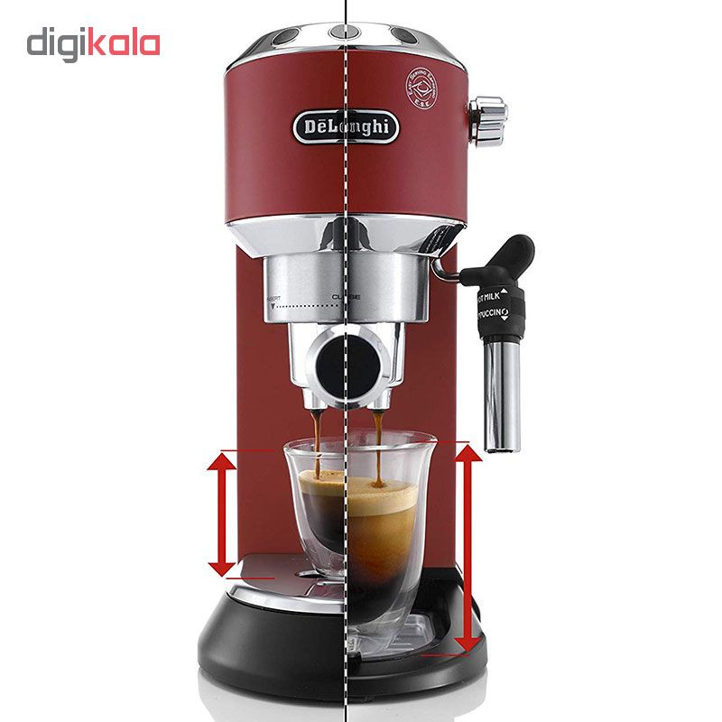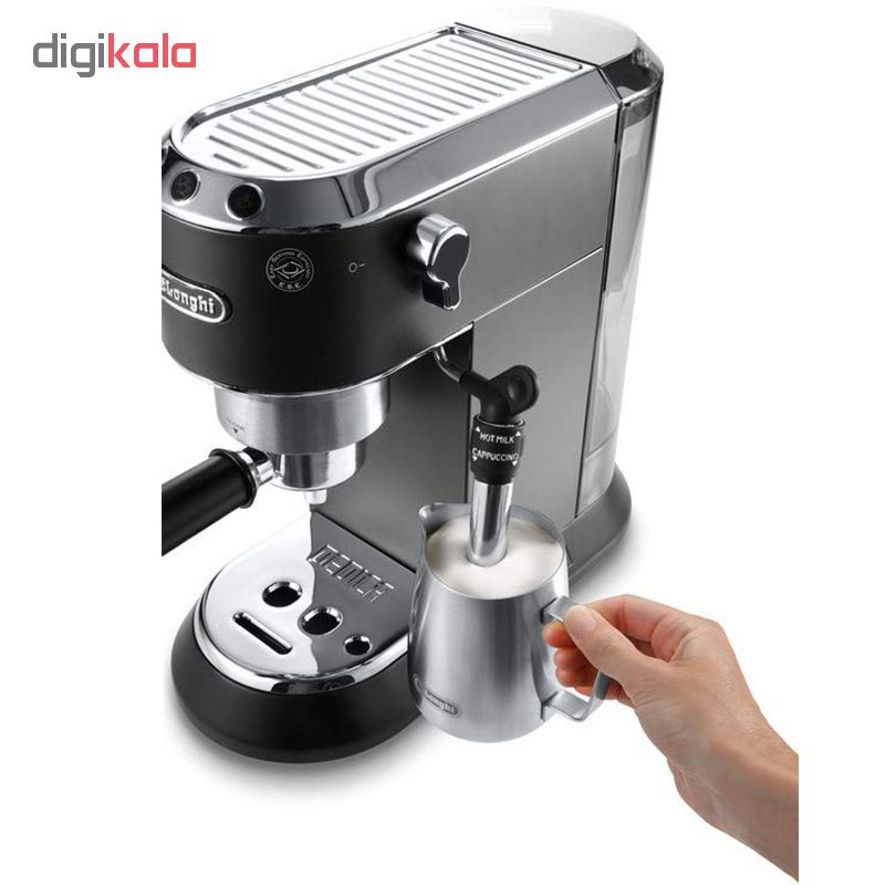 محصولی از شرکت ایتالیایی دلونگی میباشد. سیستم کاپوچینوساز قابل تنطیم": این سیستم بخار و هوا و شیر را میکس می کند تا با تولید کف شیر غلیظ، خامه ای و کف دار، کاپوچینویی عالی بدست آید. نگهدارنده فیلتر قهوه حرفه ای؛ هم برای قهوه آسیاب هم قهوه کیسه ای همراه با ابزاری برای خامه گیری برای یک یا دو پیمانه قهوه آسیاب یا قهوه کیسه ای سیستم سلف پرایمینگ به این معناست که دستگاه همیشه آماده استفاده است امکان خروج آب داغ مخزن آب جداشدنی سینی چکه جداشدنی با نشانگر سطح آب سیستم ضد چکه قفسه گرم کننده فنجان دارای فیلتر آب(اختیاری) دکمه روشن/خاموش با عملکرد استندبای اتوماتیک بعد از یک دوره مدت زمان اعلام فرا رسیدن رسوب زدایی را نمایش میدهد.