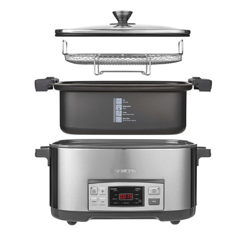 آرام پز سنکور دارای طراحی ظریف و از جنس استیل ضد زنگ است و متناسب با هر آشپزخانه ای می باشد.در وقت و هزینه شما در خانه صرفه جویی می کند، زیرا نسبت به یک اجاق گاز الکتریکی معمولی یا اجاق برقی انرژی کمتری مصرف می کند و به آرامی ، به طور مساوی ، به روشی سالم و بدون چربی غذای شما را می پزد و مواد مغذی با ارزش غذایی را بدون سوزاندن یا خشک کردن چیزی حفظ می کند و همچنین بخار پز می کند ، می پزد، کباب می کند ، تفت می دهد و قابلیت درست کردن ماست خانگی عالی را دارد .سیستم قفل دو درب تضمین می کند که حداکثر عطر و طعم با غذا حفظ می شود و باعث می شودغذای شما با دمای ثابت پخته شود. از این ارام پز می توانید برای برای بخارپز کردن ماهی ، کوفته یا سبزیجات استفاده کنید . ارام پز سنکور از فولاد ضد زنگ 304 ممتاز ساخته شده و مناسب برای ماندگاری طولانی مدت و مقاوم در برابر زنگ زدگی است . دستگیره های لمسی مانع از سوختگی دست می شوند . هفت ویژگی برتر این آرام پز • سادگی - به سادگی تمام مواد را در گلدان قرار دهید و اجازه دهید کار خود را انجام دهد. • صرفه جویی در مصرف انرژی و آب - به لطف ساخت مخصوص و گلدان آلومینیومی ، انتقال حرارت در گلدان های سرامیکی سنتی موثرتر است و باعث صرفه جویی در مصرف انرژی می شود. • صرفه جویی در وقت - یکی که همه مواد را در قابلمه قرار دهید و بگذارید به تنهایی بپزد. • طعم دهنده های قوی و بدون از دست دادن ویتامین - به لطف پخت آهسته و دمای پایین ، هم طعم ها و هم ویتامین ها را در مقایسه با پخت و پز سنتی ذخیره می کنید. • گوشت آبدار - پخت و پز آهسته ، سس را به جای بیرون گوشت نگه می دارد. • امکان پخت گوشت های سخت - گوشت های سخت سنتی با پخت آهسته خوشمزه هستند. • پخت و پز بدون چربی - به لطف درجه حرارت پایین نیازی به استفاده از روغن ندارید و بنابراین غذاهای سبک تری تهیه می کنید که حتی خوشمزه تر هستند.