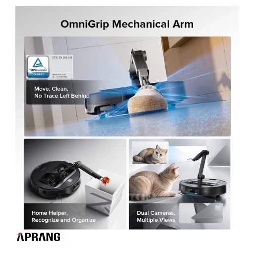 قدرت مکش: 22000 پاسکال ظرفیت باتری: 6400mAh مخزن گرد و غبار: 350 میلی لیتر فیلتر HEPA: دارد گارانتی: سلامت و اصالت فیزیکی کالا سایر مشخصات(جارو شارژی رباتیک) سایر مشخصات(جارو شارژی رباتیک) AI Features: (AI-powered object recognition 108 preset + 50 user-defined)(AI Dirt Detection for re-wash and re-mop)(AI-powered cleaning customization) Auto Mop Drying: Yes, with 55–60 °C warm air drying Battery Type: High-capacity lithium-ion battery Charging Time: About 3 hours Clean Water Tank Capacity: Approx. 4 L (in Dock 4.0) Cleaning Modes: (Vacuum)(Mop)(Vacuum + Mop)(Intelligent Multi-Pass Cleaning) Design Height / Clearance: 7.98 cm (3.14 in) ultra-slim body Dirty Water Tank Capacity: Approx. 2 L Dock Weight: Approx. 8.5 kg Dustbin Capacity: Approx. 180 ml Hot Water Mop Washing: Yes, up to 80 °C Main Brush Type: FreeFlow main brush – anti-tangle design Mechanical Arm: OmniGrip five-axis robotic arm capable of handling objects up to 300 g Model Name: Roborock Saros Z70 Mopping System: Dual spinning mops with 200 RPM rotation and adjustable 30 water flow levels Navigation System: StarSight Autonomous System 2.0 with VertiBeam Lateral Obstacle Avoidance Noise Level: Low-noise operation (under 65 dB average) Obstacle Handling: Moves, lifts, and organizes small items such as socks, toys, and tissues Pet-Friendly Features: (Video call and cruise mode)(Pet recognition and area detection)(Search-for-pet function)(Automatic suction boost in pet zones) Product Dimensions: 18.7"L x 15"W x 19.2"H Runtime / Battery Life: Up to 180 minutes continuous cleaning Side Brush Type: Zero-Tangle FlexiArm Riser side brush Smart Controls: (Roborock SmartPlan 2.0)(Built-in “Hello Rocky” voice assistant)(App control with multi-floor mapping, no-go zones, and custom cleaning)(Compatible with Amazon Alexa and Google Home) Suction Power: 22000 Pa Threshold Climbing Ability: Up to 4 cm Total System Weight: Approx. 18 kg Weight: Approx. 5.2 kg (robot only)