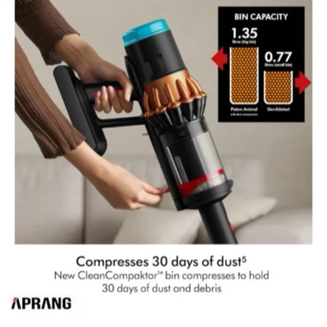 توان مصرفی: 900 وات نمایشگر دیجیتال: دارد ظرفیت مخزن آب: 300 میلی لیتر زمان شارژ: 4.5 ساعت گارانتی: اصالت و سلامت فیزیکی کالا مشخصات جارو تخت خواب سایر مشخصات جارو تخت خواب Anti-Tangle Technology: Yes Anti-Tangle Battery Life: Up to 70 minutes Long Battery Swap Option: Yes Extended Battery Type: Removable Replaceable Boost Mode: Yes Extra Brand: Dyson Brush Head Type: All Floor Cones Sense Versatile Brush Roll Type: Soft & Stiff Combination Flexible Charging Time: Approx. 4.5 hours Fast Color: Matte Black with Copper accents Black Connectivity: MyDyson app for maintenance and settings Smart Cordless: Yes Wireless Coverage Area Wet Cleaning: Up to 1180 sq. ft Wide Cyclone Technology: Dynamic Cyclone Efficient Design: Ergonomic Comfortable Dust Bin Type: CleanCompaktor with dust compression Compressed Dust Capacity: Up to 30 days Large Edge Cleaning: Yes Precise Filtration: Whole machine HEPA, 5-stage fully sealed HEPA Floor Types Compatible: Carpet, Hard Floor All Height: 15 inches Compact LED Display: Yes Informative LED Lighting on Cleaner Head: Yes Bright Material: Plastic & metal components Durable Model Name: V16 Piston Animal Motor Type: Hyperdymium 900W digital motor Hyperdymium Noise Level: Moderate Quiet Pet Hair Capability: Yes Effective Runtime in Boost Mode: Approx. 20 minutes Short Suction Power: 315 AW Powerful Tools Included: Combi tool, Crevice tool, Hair Screw 2.0 tool, Remote Release, Hidden Wand Complete Trigger Type: Continuous power trigger Easy Water Tank Capacity: 300 ml Weight: Approx. 11.73 lbs Lightweight Wet Cleaning Feature: Submarine™ 2.0 wet roller head Wet Width: 11.81 inches Slim